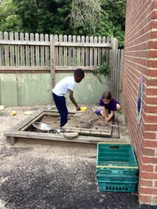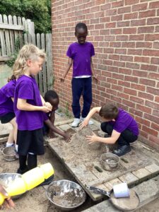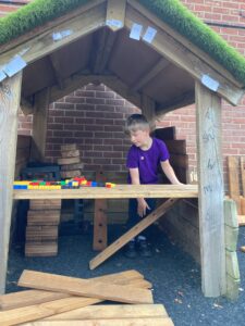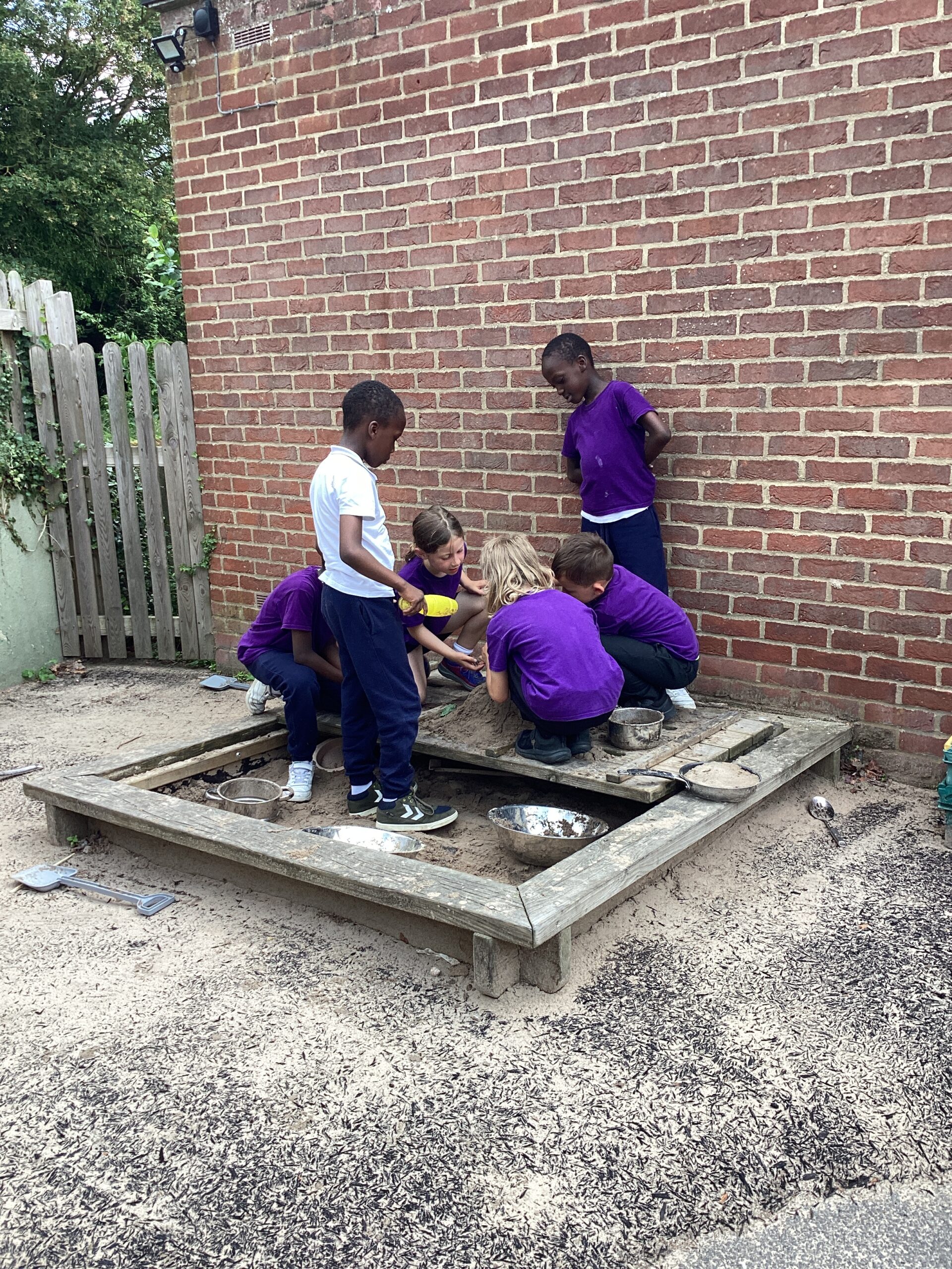Willow Class have been making the most of the warmer weather in their choosing time this term, the sand pit has been a favourite, making a tall mountain and an erupting volcano.