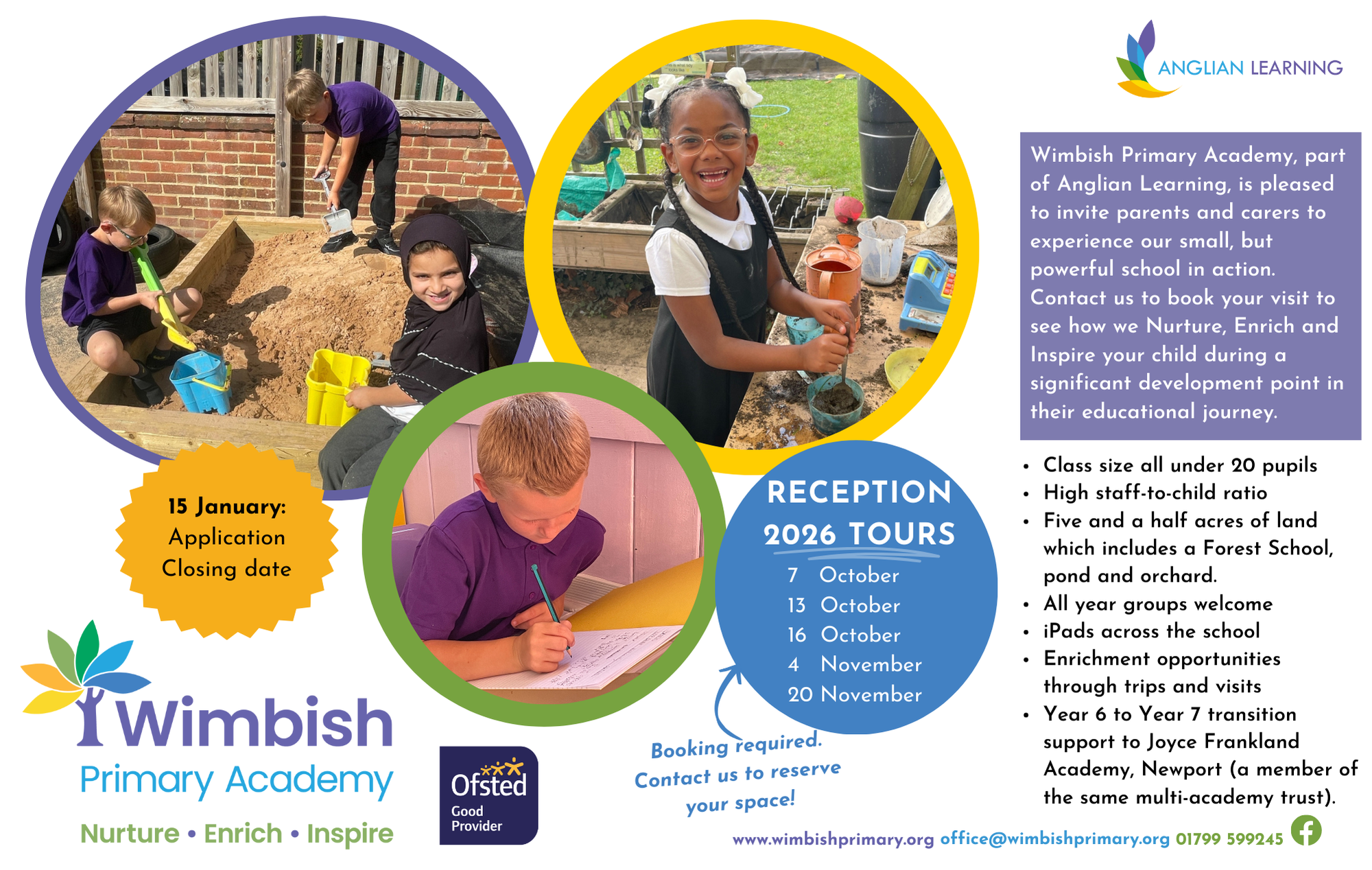 Reception 2026 tours – dates now available, please contact the school office to book – 01799 599 245 or email office@wimbishprimary.org