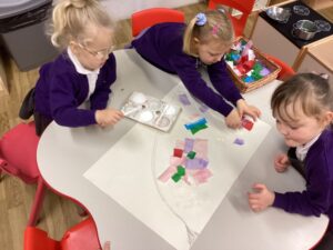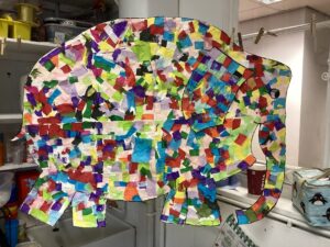 Alongside our ‘No outsiders’ assemblies and ethos, we as a class have been looking at David McKee’s Elmer book, we have compared differences and similarities within the book. We have also used our amazing art skill of collage to create our own giant Elmer for our hall display based on our PSHE and No Outsiders subject of belonging and how to make friends.