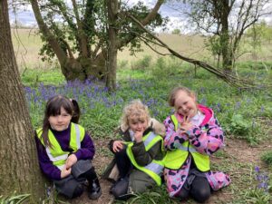 The children were brilliant. They spotted lots of nests, animals trails and of course different animal poo! The sights and smells of the Bluebell woods were amazing and it was amazing for our wellbeing. The children talked about the blue carpet like a swimming pool, discussed animals that might live in holes in trees or the ground and identified some of the other wild flowers we saw… they were truly amazing observers and scientists!